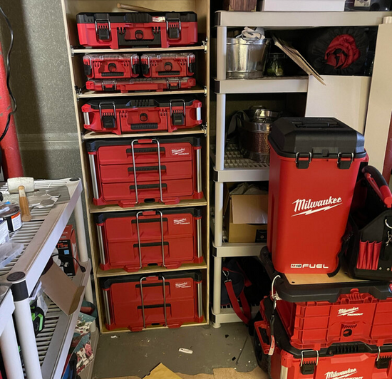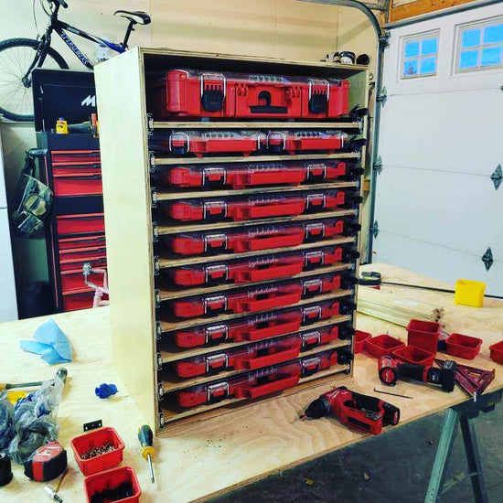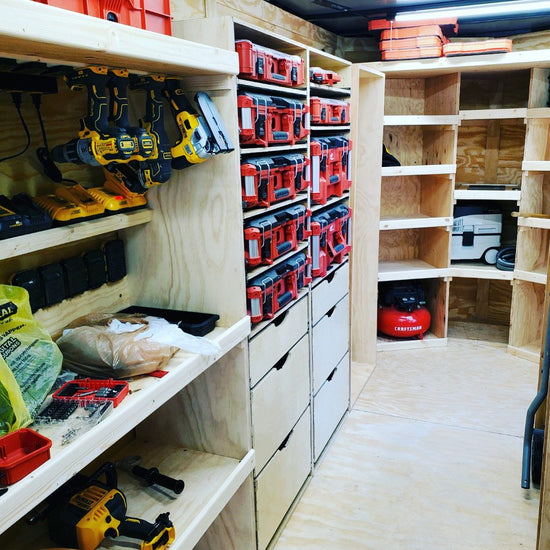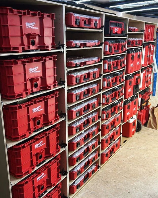 Steve's setup shows the versatility with the STV Racking system. Dewalt Tough System, Festool Systainers, and Standly TStack all mixed and matched. Don't forget the drawers!