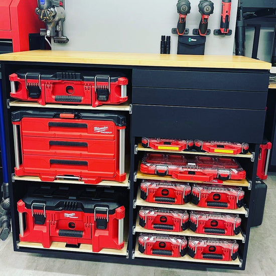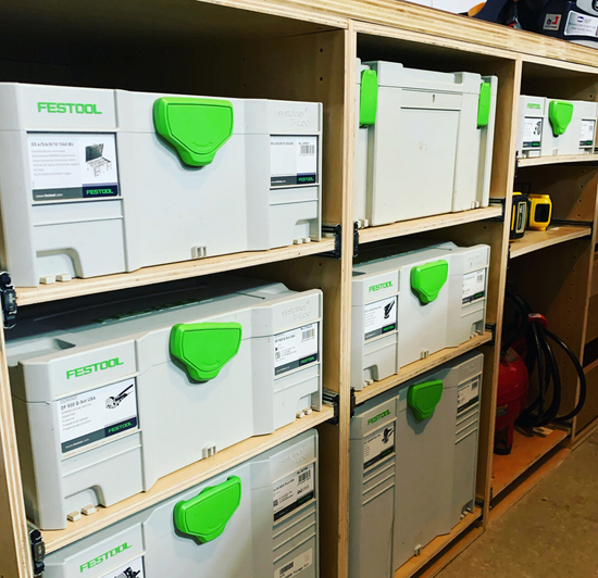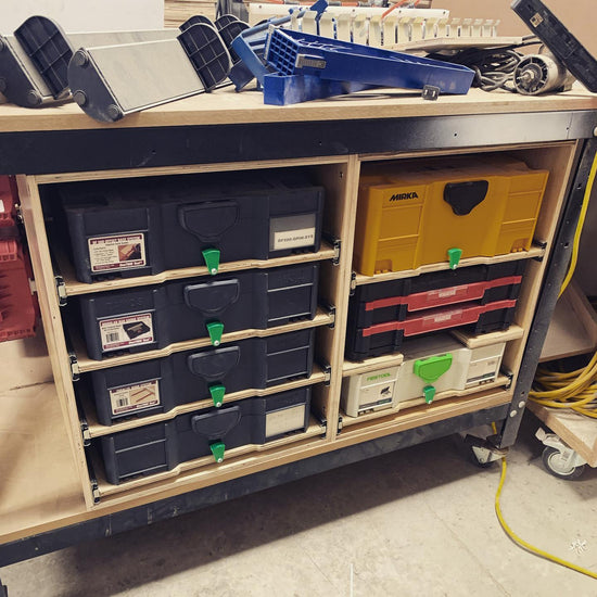 This is the other side of our Utility table. This stores our Systainers and is absolutely a time saver when we need to access these tools. We simply pull out the tray and open the Systainer and grab the tools. No need to fuss with the case!