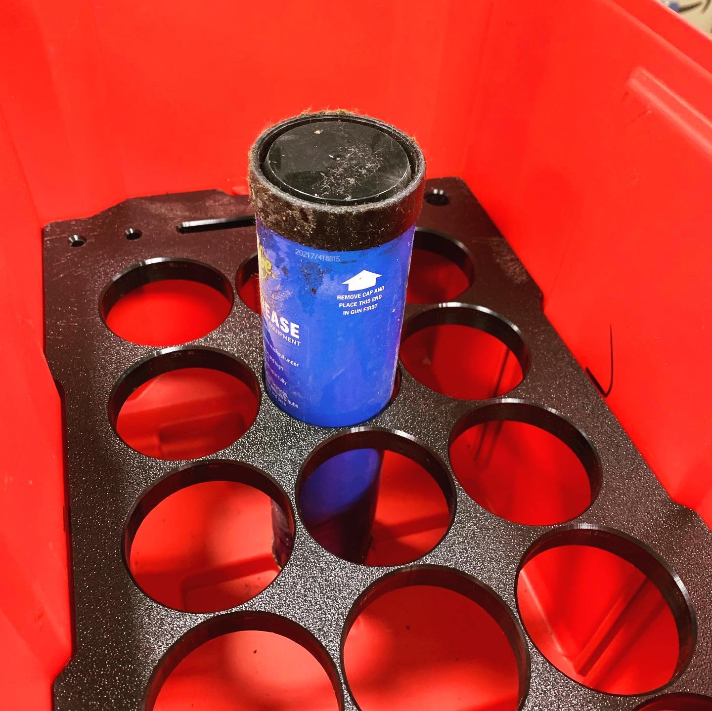 Designed to fit perfectly inside the Milwaukee Packout Ammo Can, this organizer provides various sizes to store your rattle cans or tubes of caulking or adhesives.