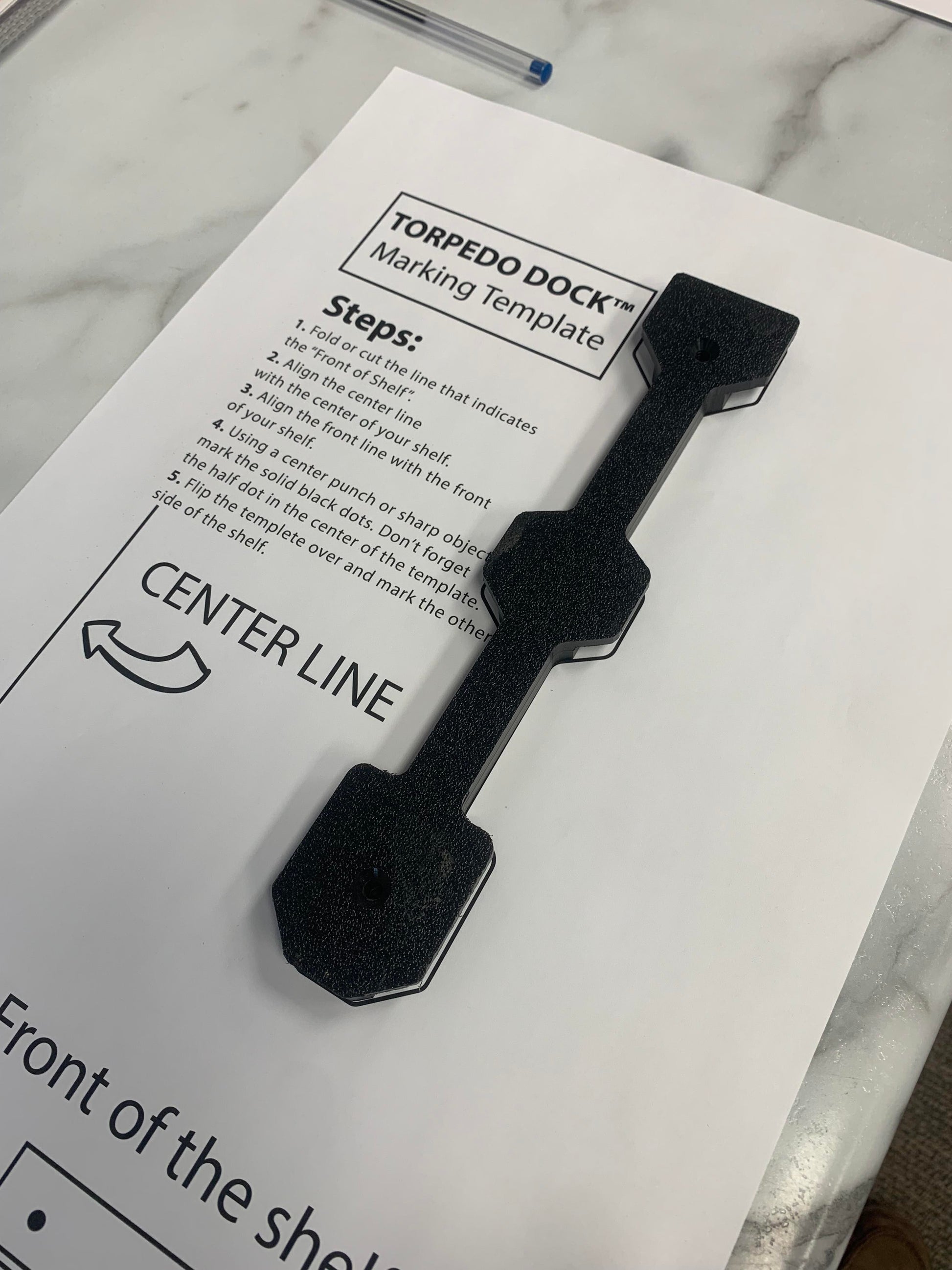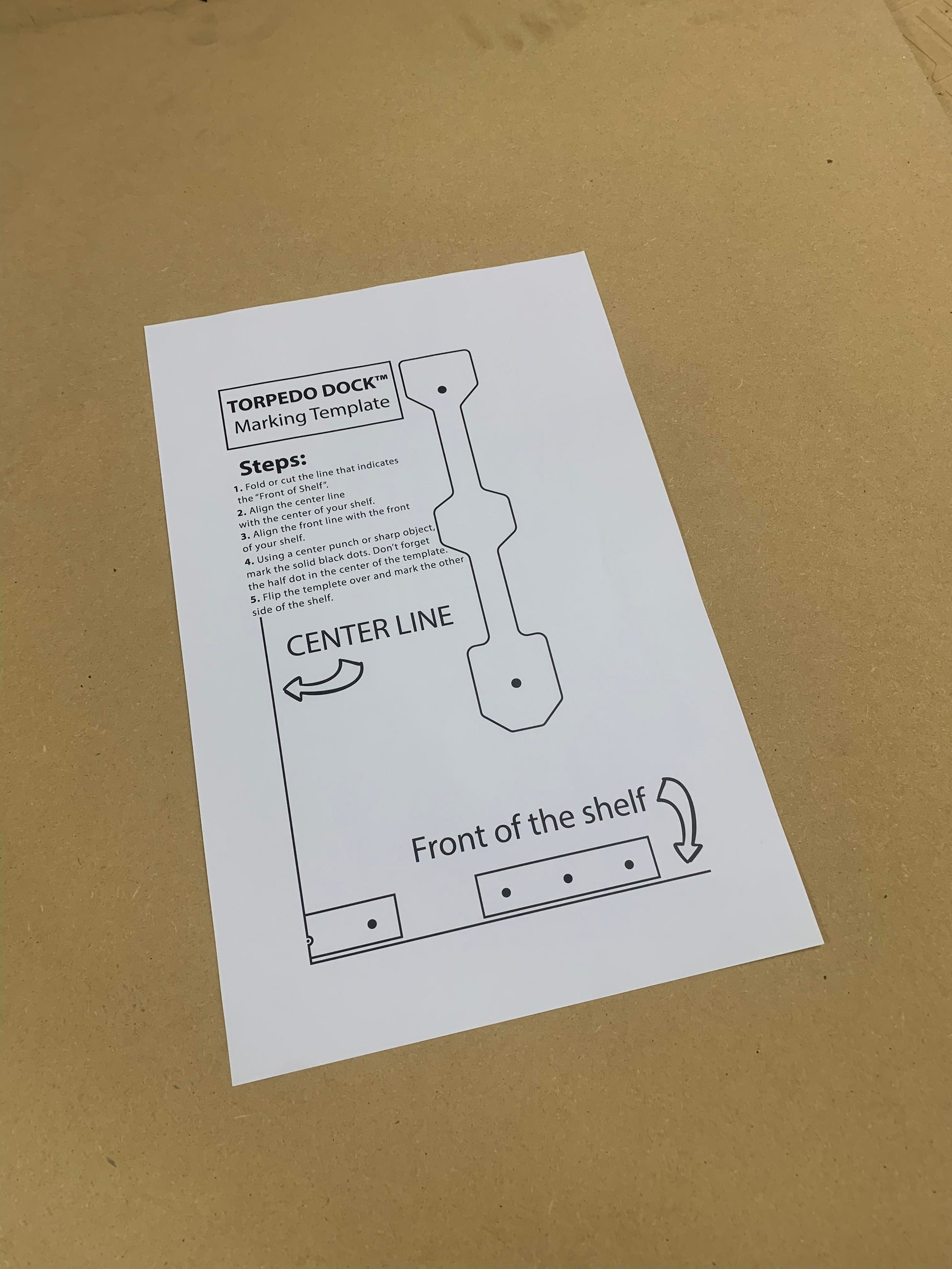 A paper marking template will be included with every order. Use this template to mark the locations for drilling holes. If you need to do multiple, consider making a wooden template from the paper one.